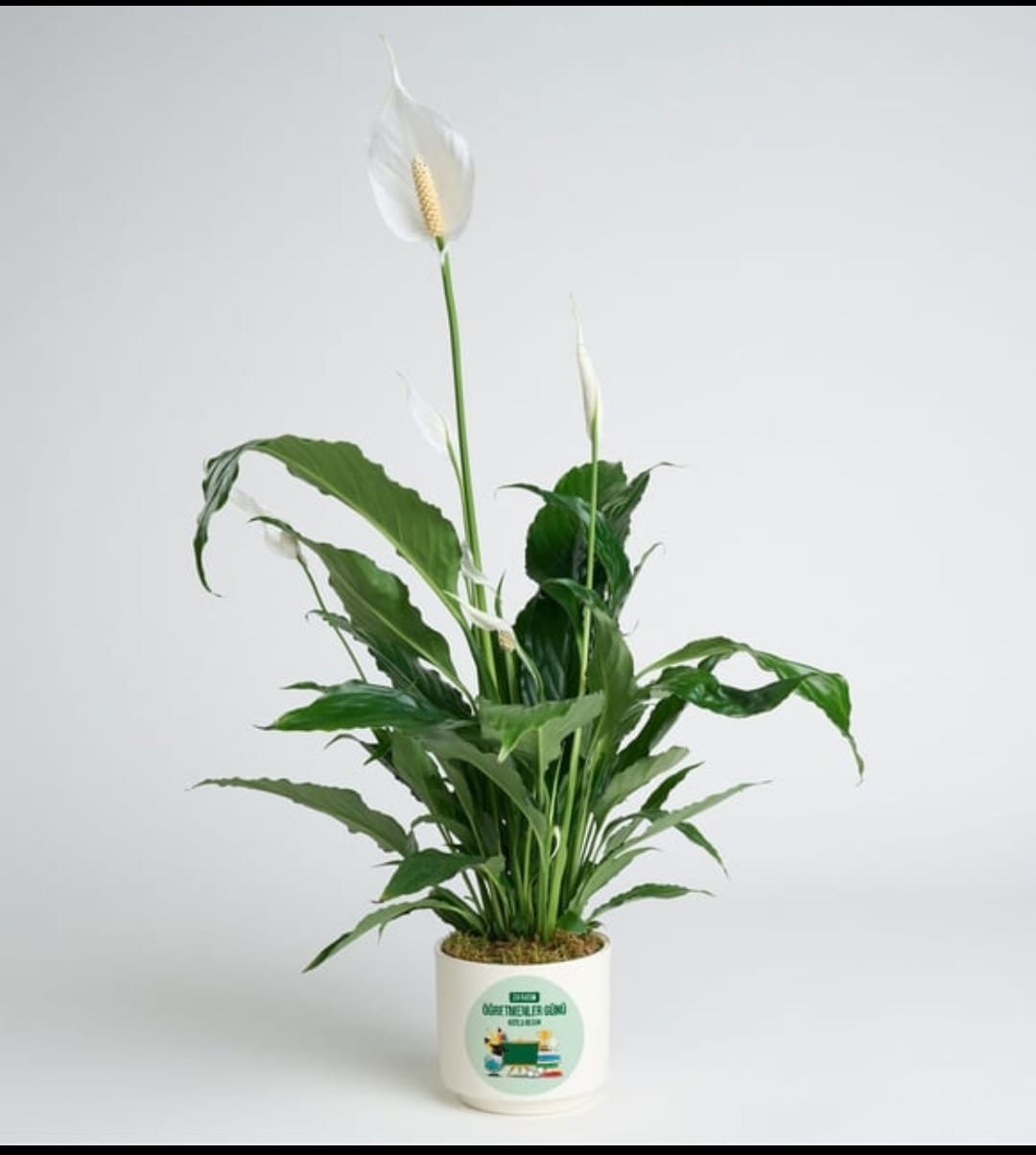 Barış Çiçeği (Spathiphyllum), zarif beyaz çiçekleri ve parlak yeşil yapraklarıyla bulunduğu ortama huzur ve zarafet katar. Sevdiklerinize veya değerli öğretmenlerinize kalıcı bir mutluluk armağan etmek için mükemmel bir tercihtir. Havadaki toksinleri temizleme özelliğiyle aynı zamanda doğal bir hava filtresidir.