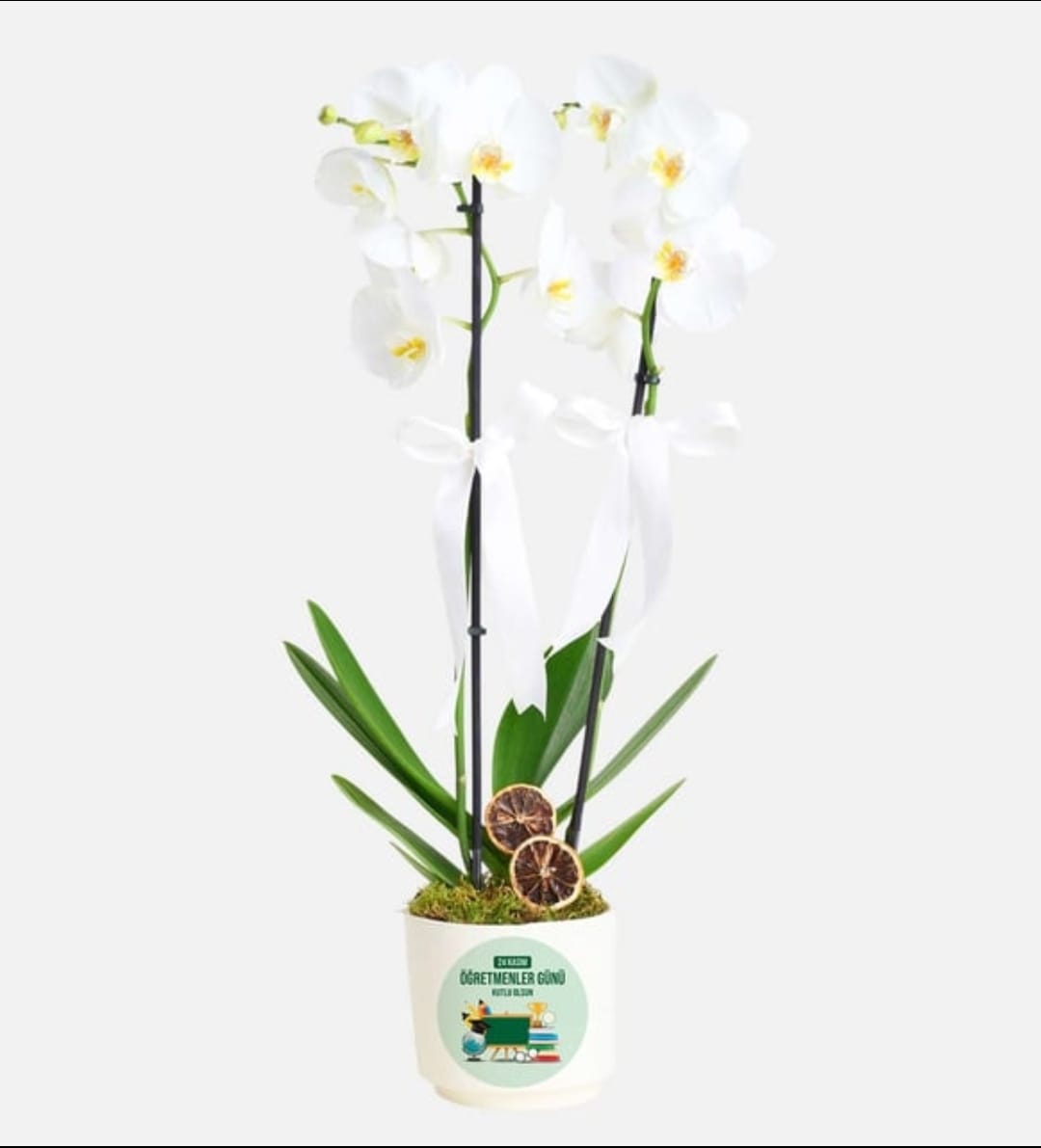 Şık saksı tasarımıyla birlikte sunulan bu beyaz orkide, öğretmenlerinize özel ve kalıcı bir mutluluk armağan eder. Ev, ofis veya sınıf ortamlarında kolaylıkla bakımı yapılabilir, uzun süre çiçekli kalır.