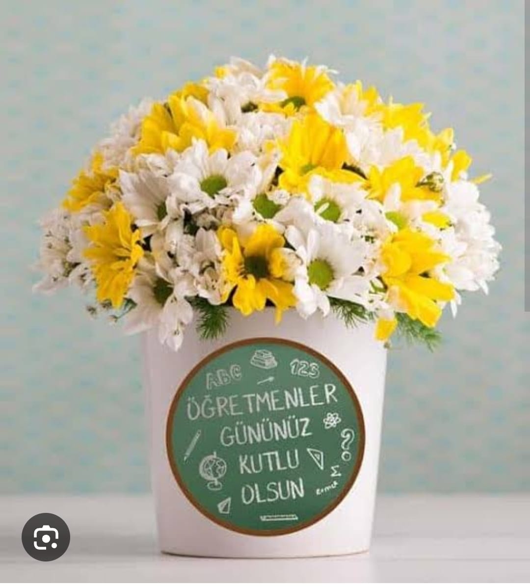 Doğal tazeliğini yansıtan papatyalar, üzerinde “Öğretmenler Gününüz Kutlu Olsun” yazılı modern saksı ile birleşerek hem dekoratif hem de anlamlı bir hediye ortaya çıkarır. Neşeli renkleri sayesinde öğretmeninizin gününü aydınlatır ve ona unutulmaz bir sürpriz yaşatır.