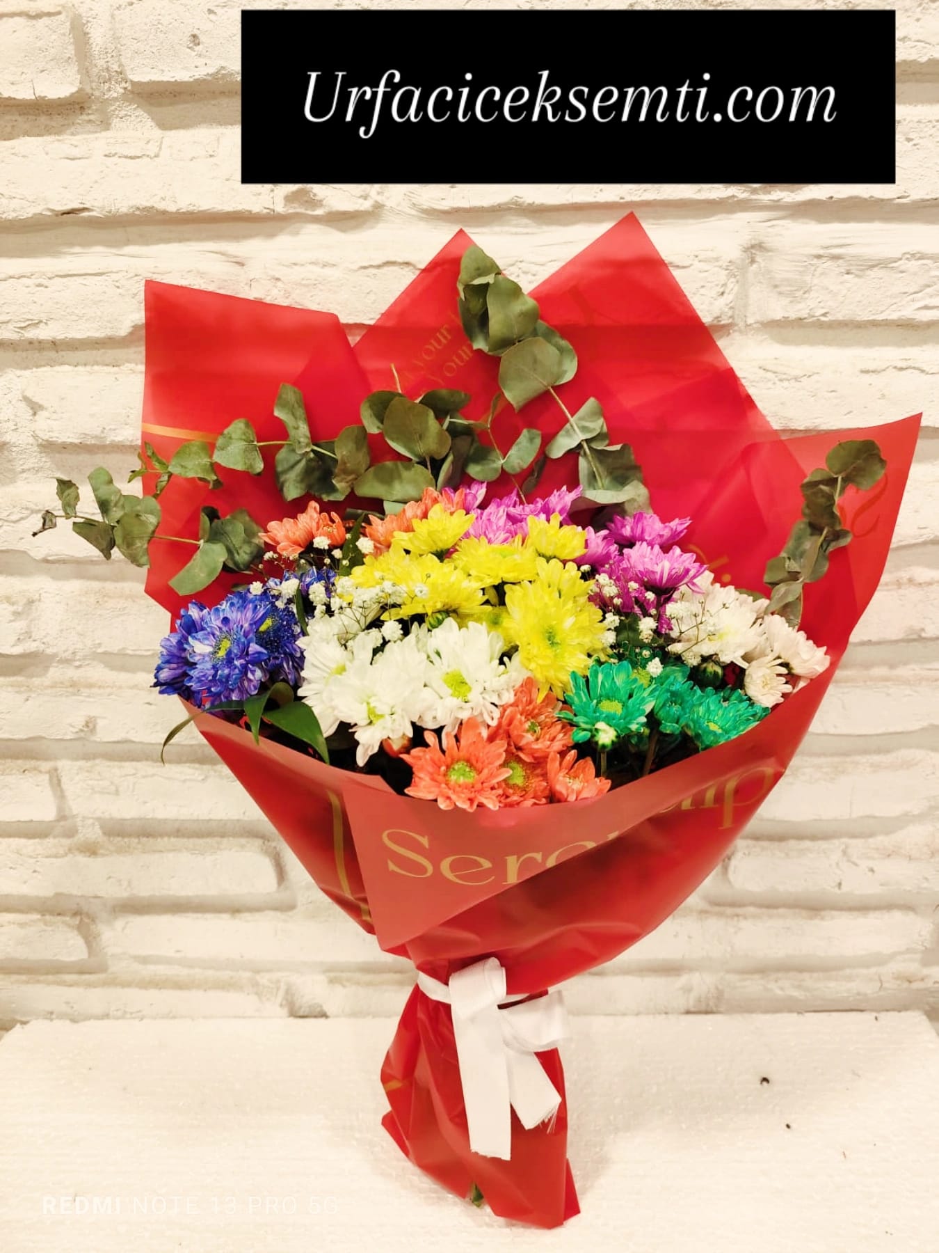 Kırmızı ambalajı ve beyaz kurdele detayıyla modern bir dokunuş kazanan bu rengarenk krizantem buketi, sevgi, mutluluk ve pozitif enerjiyi aynı anda ifade eder. Urfa Çiçek Semti güvencesiyle hazırlanan bu özel buketi şimdi sipariş ederek aynı gün teslimat avantajını yakalayabilir, sevdiklerinizi rengarenk bir mutlulukla şaşırtabilirsiniz.